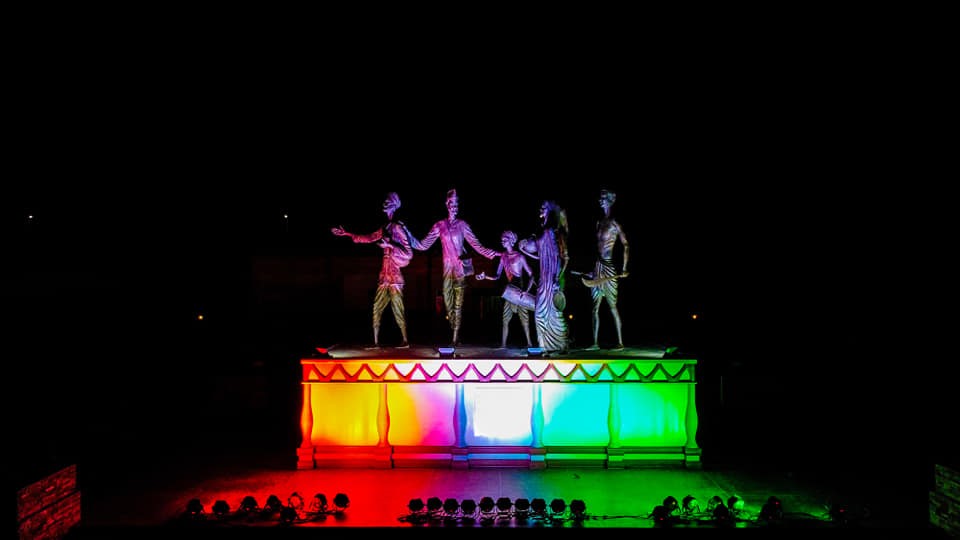 the Indian Arrival Monument in Palmyra, Region Six, was illuminated in the